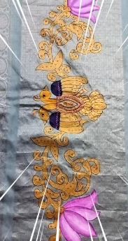 Placement: Usually painted on the pallu, border, or lower pleats of the saree to highlight the artwork without overpowering the drape.